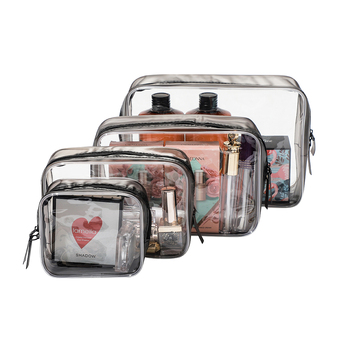 Neceser cosmético de PVC transparente impermeable con impresión de logotipo personalizado, neceser con cremallera, neceser de transporte